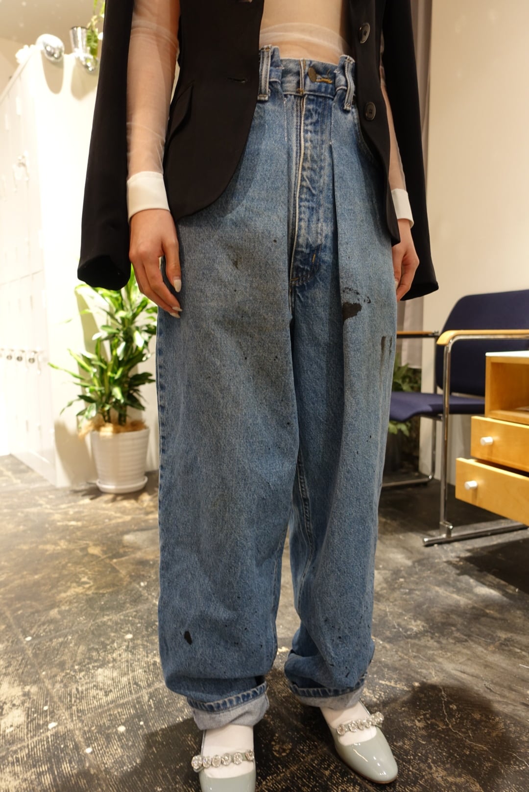Caf original remake paint denim tuck pants